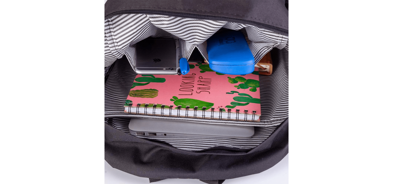La Mochila Oran ZB-284BA ECO cuenta con compartimento principal amplio para cuadernos, carpetas o una notebook pequeña, además de bolsillos frontales y laterales para organizar cargadores, billetera, llaves y botella de agua. Las tiras regulables acolchadas brindan un calce cómodo durante todo el día.